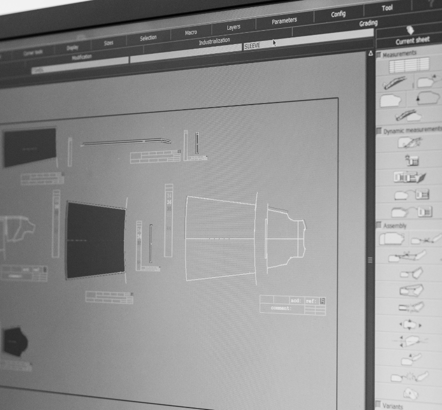 Our design studio and sample room offer proficient and flexible services in product design, CAD/CAM illustrations and prototypes creation. We are fully equipped for the development of both high-standard knit and woven materials.
